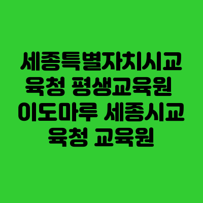 세종특별자치시교육청 평생교육원 '이도마루'는 세종 시민의 평생 학습을 지원하는 복합 문화 교육 공간으로, 교육청 산하에서 운영하는 전문 평생교육 플랫폼입니다. 해당 시설은 세종시 교육 인프라의 핵심으로서 시민들에게 다양한 평생교육 프로그램과 학습 정보를 제공합니다.