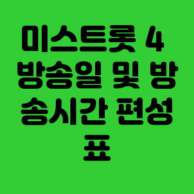 미스트롯 4는 TV CHOSUN의 대표 트로트 서바이벌 프로그램으로, 현재 공식적인 방송일은 제작진의 추후 발표를 기다리고 있습니다. 시청자들은 TV CHOSUN 공식 홈페이지와 편성표를 통해 정확한 첫 방송 정보를 확인할 수 있습니다.