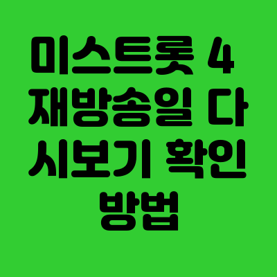 미스트롯 4 재방송은 TV CHOSUN 및 계열 채널에서 주말 시간대에 집중 편성되며, OTT 플랫폼인 TV CHOSUN 다시보기 서비스를 통해 즉시 시청이 가능합니다.